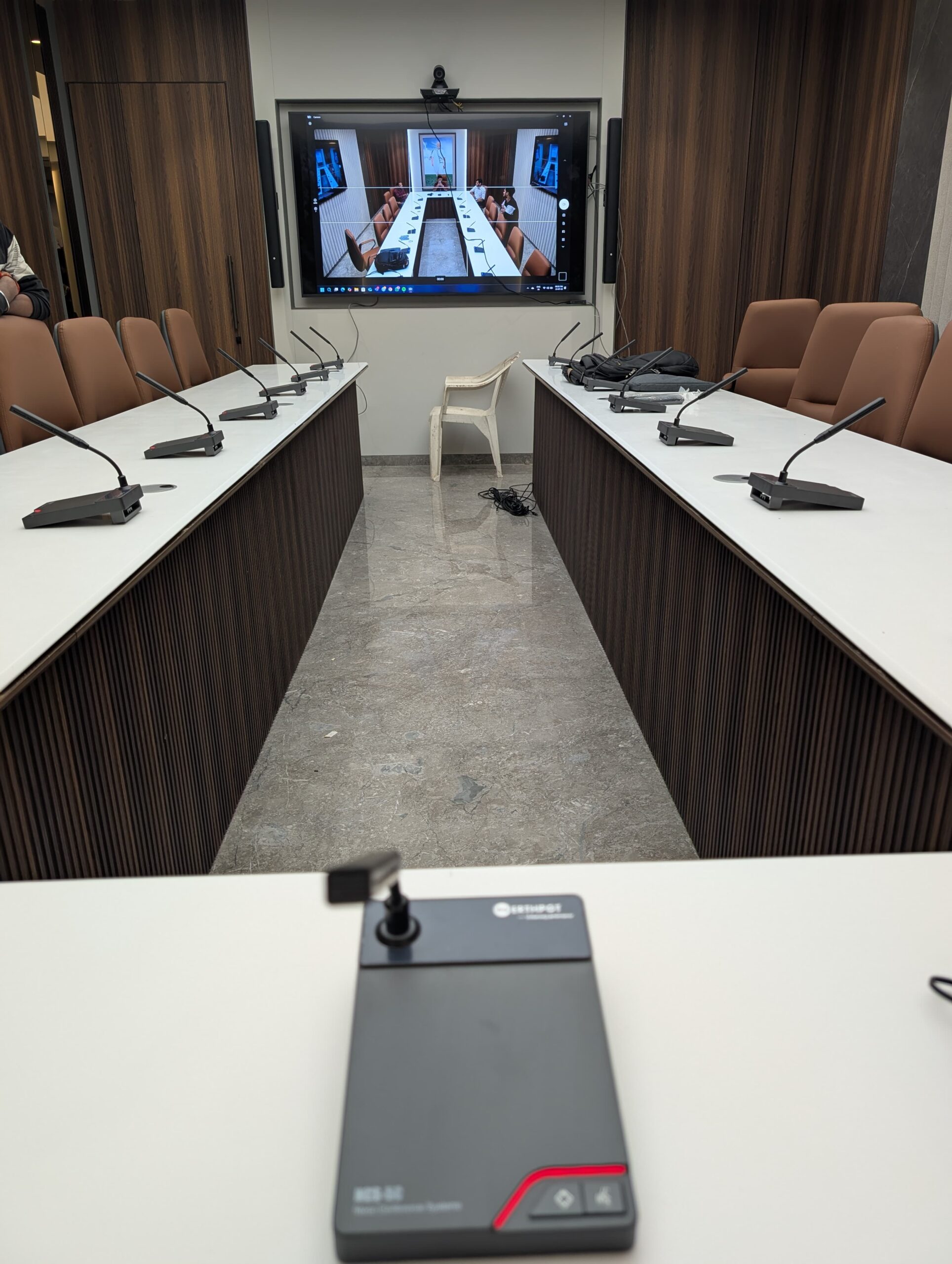 The goal was to design a professional conferencing solution offering exceptional speech clarity, user-friendly operation, and uniform sound coverage. This setup needed to perform seamlessly across formal meetings, policy discussions, and private deliberations.
